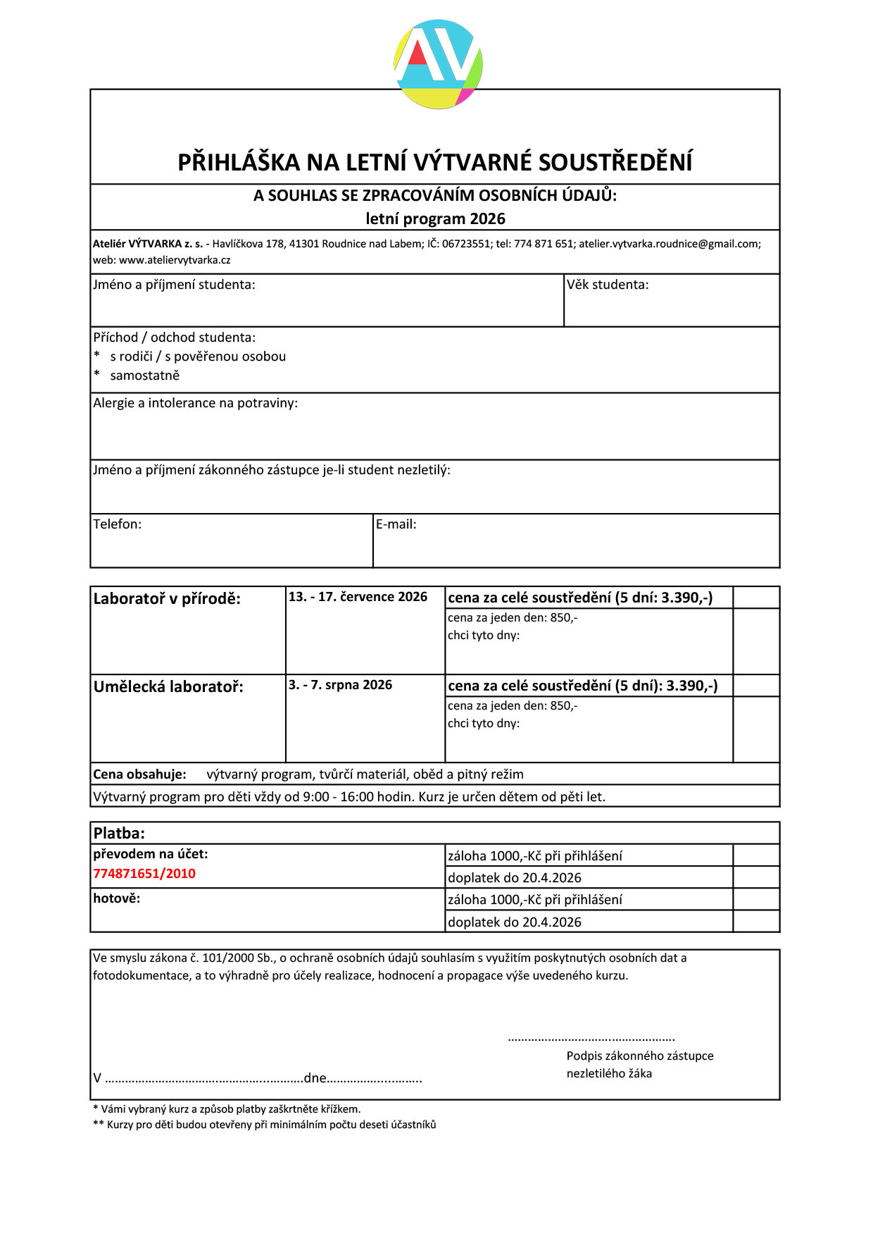 LETNÍ UMĚLECKÉ LABORATOŘE
